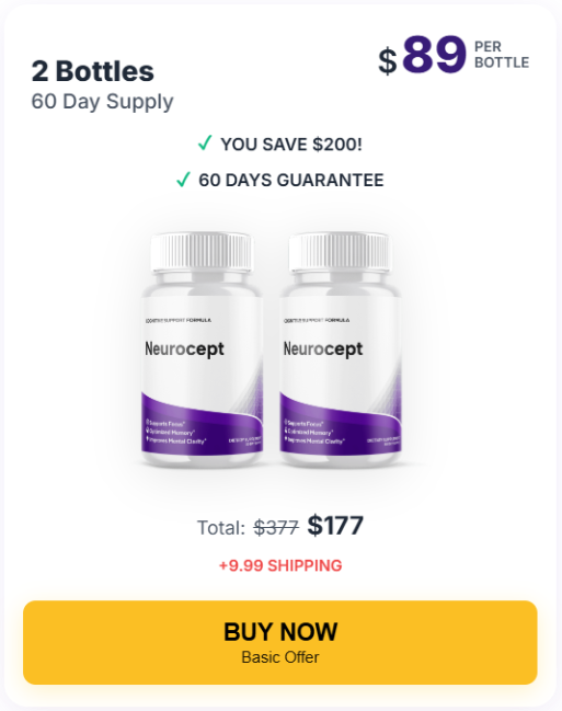 Neurocept is available exclusively through its official website to ensure authenticity and access to guarantees. Purchasing from third-party resellers or unauthorized sites is not recommended.